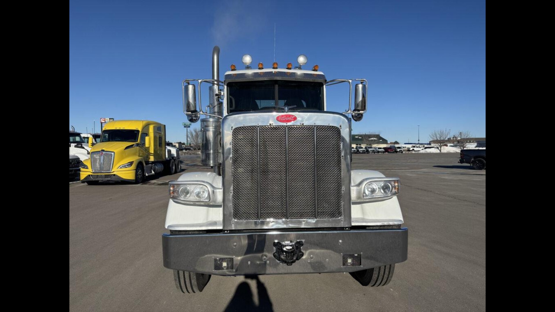2023 PETERBILT 389 | CUMMINS X15 | 500 HP | AUTOMATED TRANSMISSION | 13.5K STEERABLE PUSHER | 13.2K FA | 46K REARS | LOW MILES! | 255" WB | 3.91 REAR RATIO 120 GAL FUEL TANK | READY TO GO TO WORK |